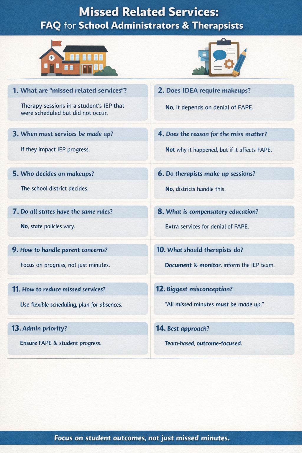 Anu Upadhyaya School Admin Verified Education Specialist 2 days ago This is the season when most missed related services occur. What should you focus on? FAPE Special Education 1 0 Comments Edit Post You need to be logged in to view the comments. Sign in Now